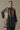 A charcoal shirt inspired by traditional cross-stitch embroidery, paired with matching charcoal trousers for a sleek and cohesive look. The ensemble is brought to life with a bold, colorful paisley shawl that adds vibrance, artistry, and a striking contrast to the deep tones of the outfit.