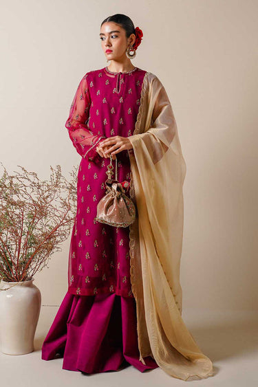 Regular fit plum kurta with colorful resham and tilla embroidery all over
