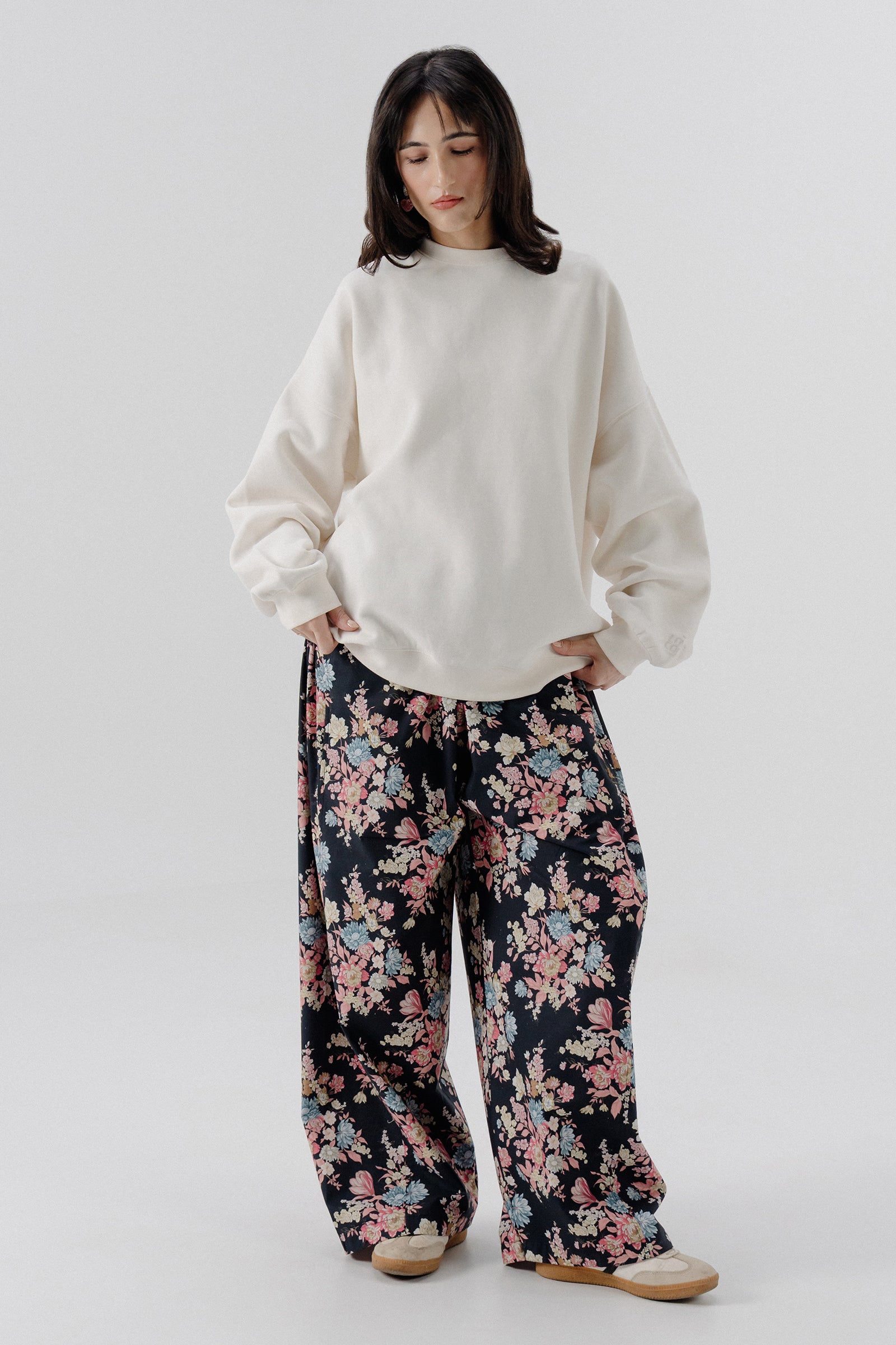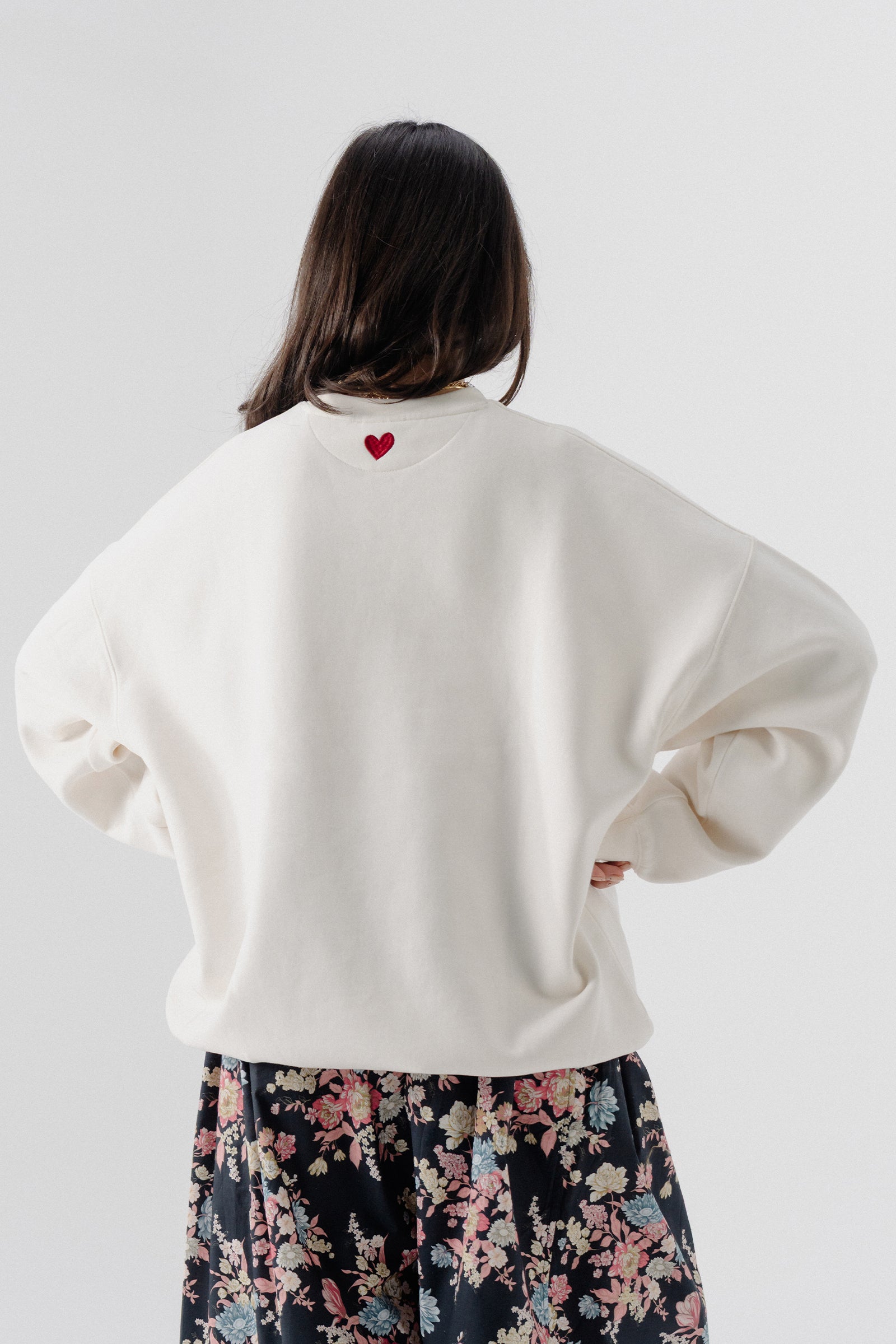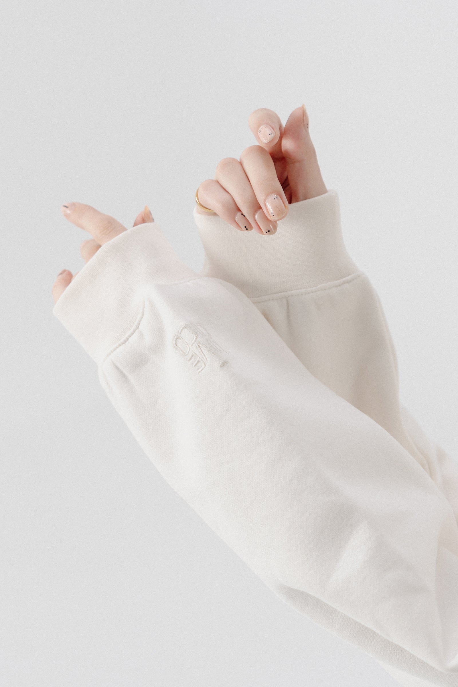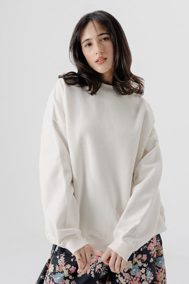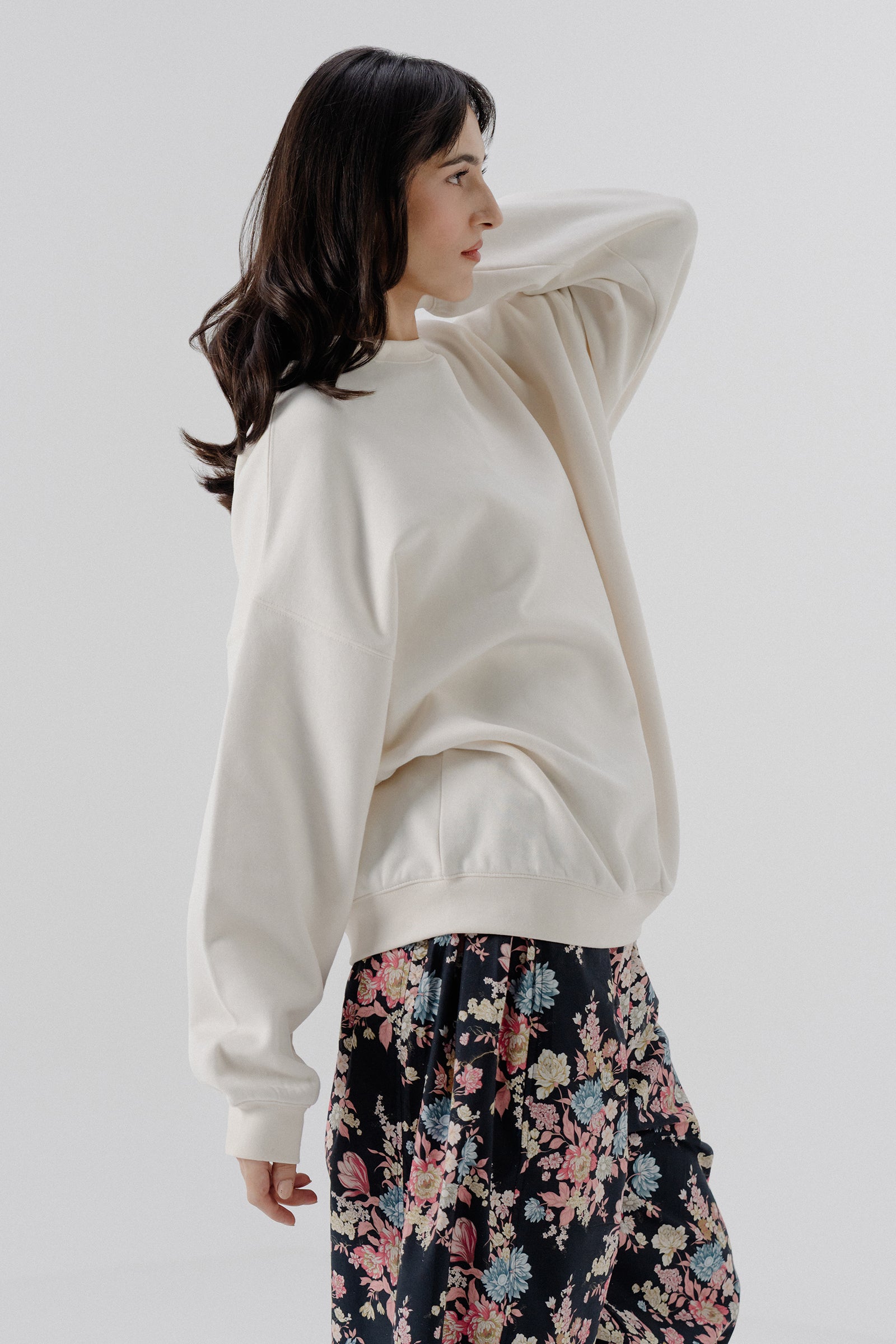 This Soft Oversized Sweatshirt is spun from luxuriously soft fleece peach fabric, combining comfort with understated style. The off-white shade gives it a minimal, clean aesthetic, while delicate sleeve detailing adds a subtle design element. Designed in a relaxed, one-size silhouette, it’s a versatile essential for everyday wear.