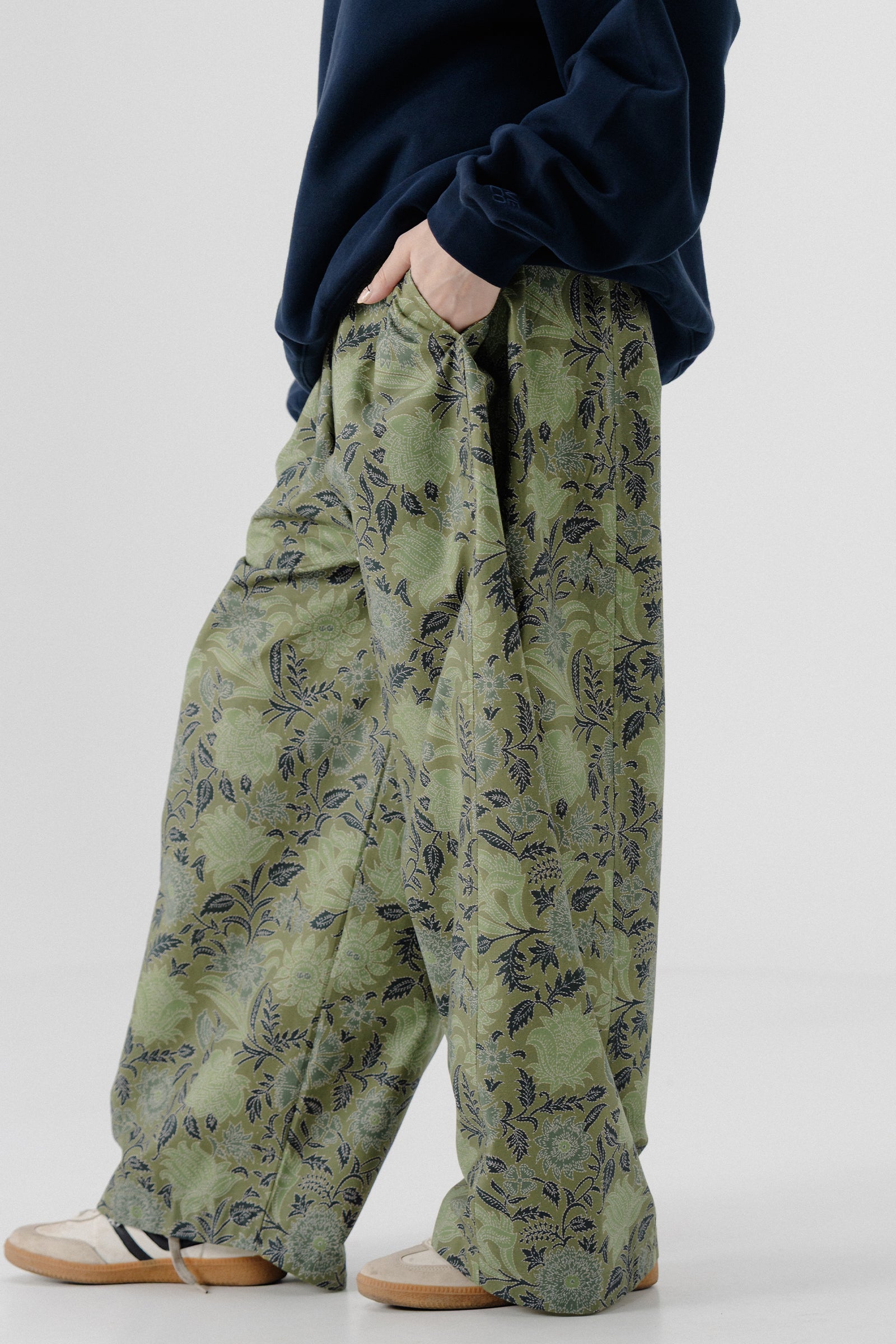 Lightweight and airy, this floral print green Shalwaar Pants in soft karandi fabric combines comfort with casual, everyday ease.