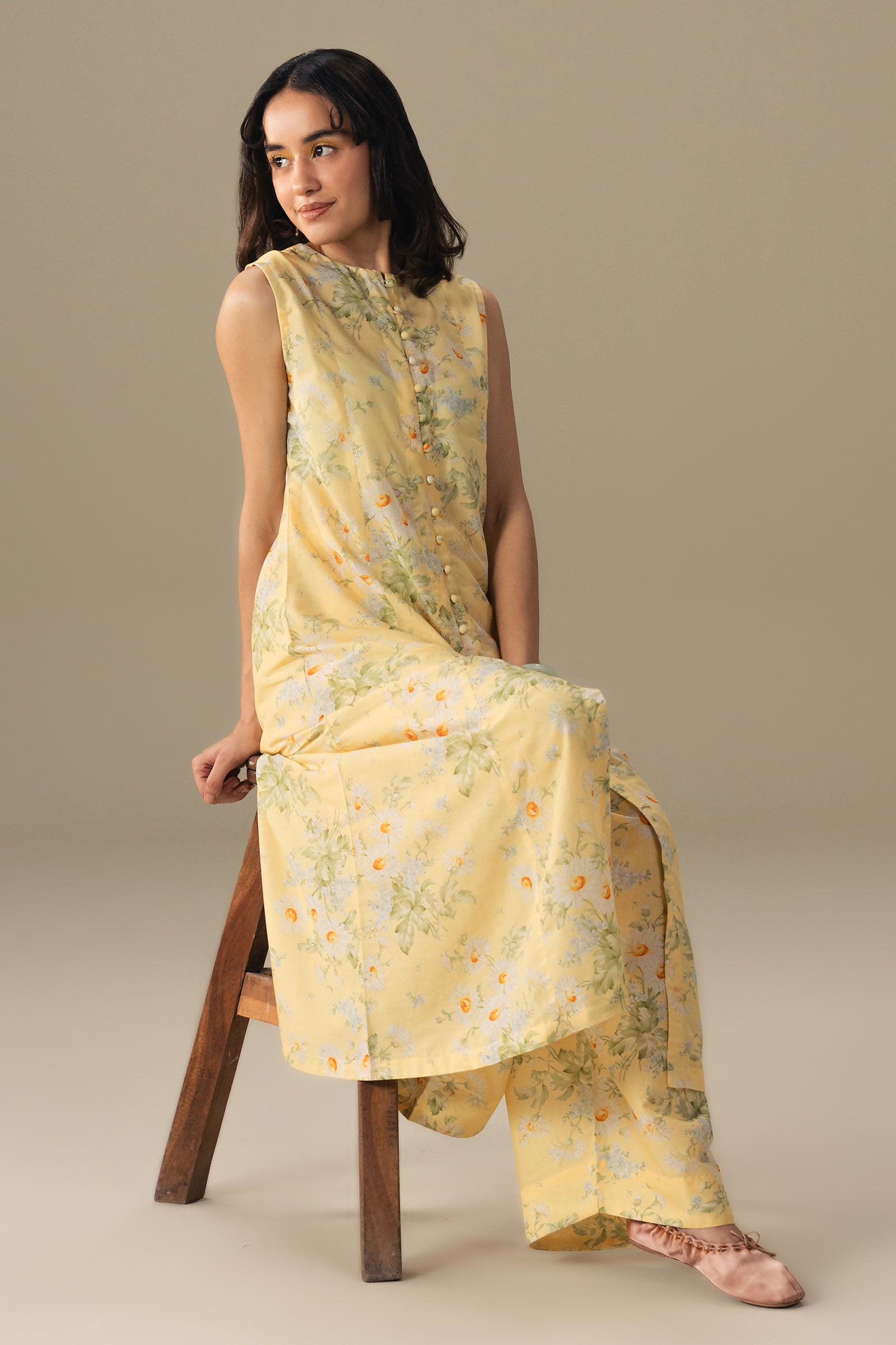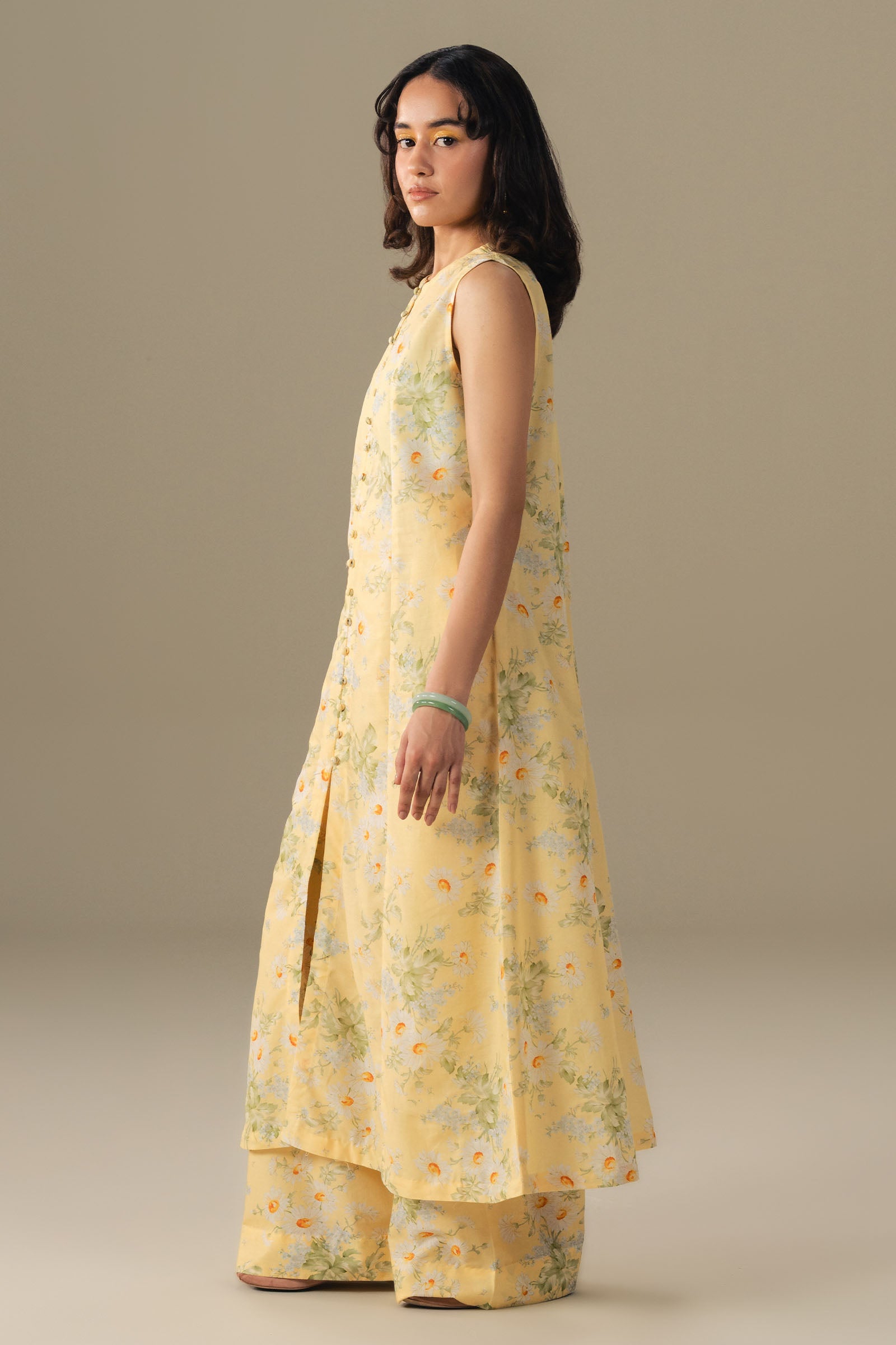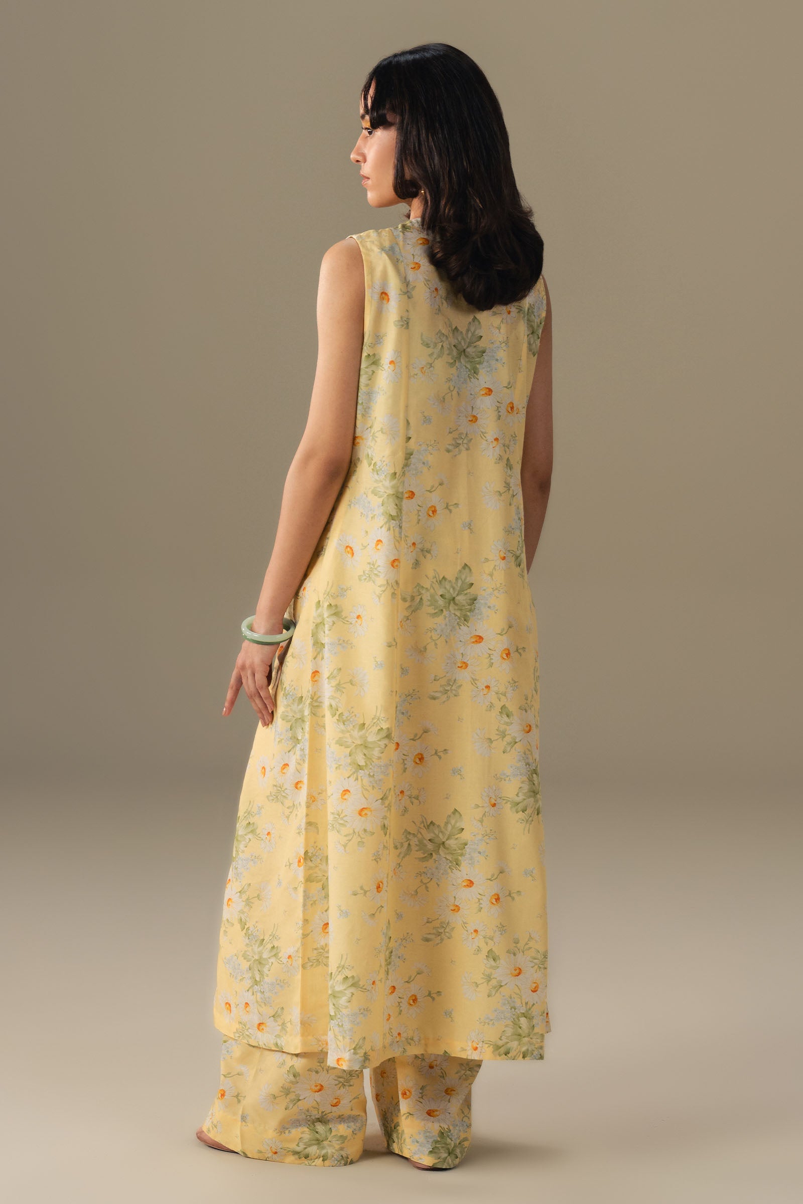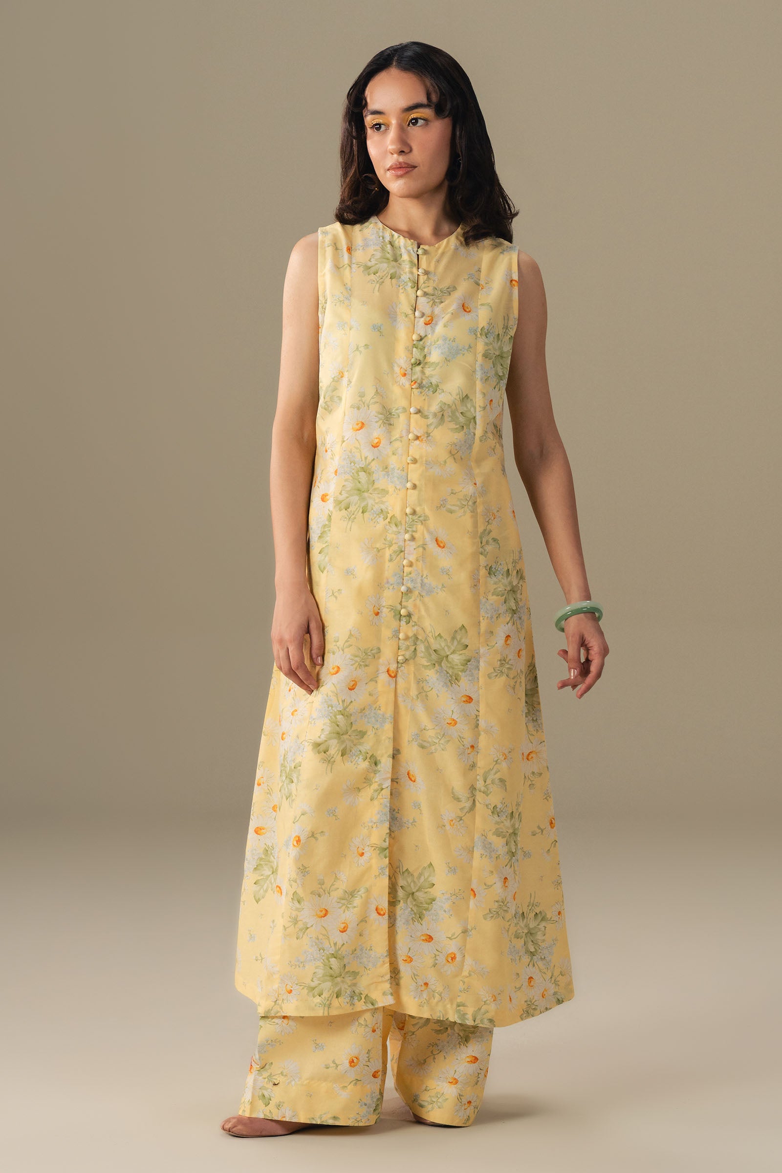 Soft structure meets fluid movement. This floral paneled shirt brings a sense of shape and rhythm, paired with a flowing farshi shalwar that adds effortless grace. Easy, feminine, and full of quiet statement energy — made for days that move with you.